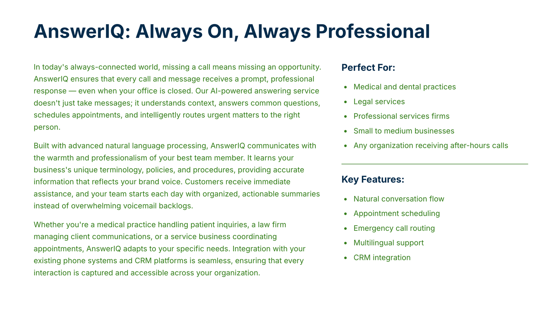 Perfect for:Service businesses, medical offices, property management, and any organization that values every customer interaction.