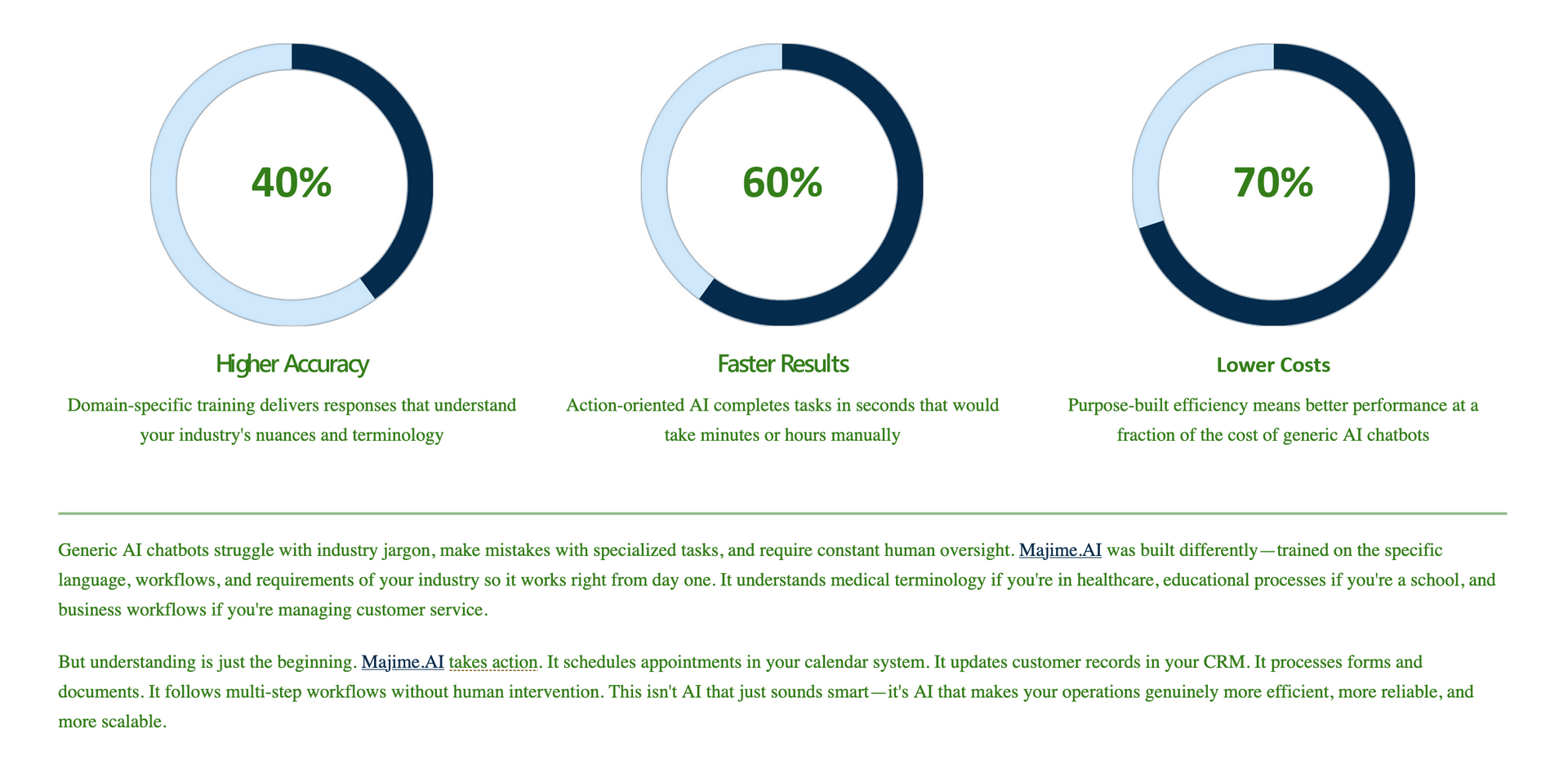 Unlike one-size-fits-all solutions, Majime.AI combines three breakthrough technologies: